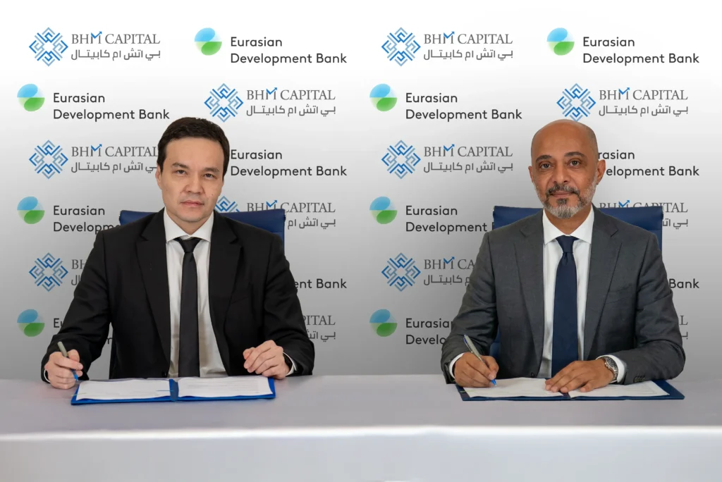 The appointment follows the signing of a mandate letter between BHM Capital and the Eurasian Development Bank. The mandate was signed in the presence of Mr. Daniyar Imangaliyev, Deputy Chairman of the Eurasian Development Bank, and Mr. Hatim Al Atabani, CEO Business & Front Office at BHM Capital.
